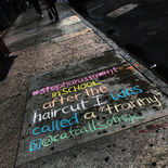 We host public events, that allow people the opportunity to share their experiences and chalk them in the pavement alongside us. The events provide a space for people to talk, learn, and join us in raising awareness on how widespread of an issue street harassment is.
